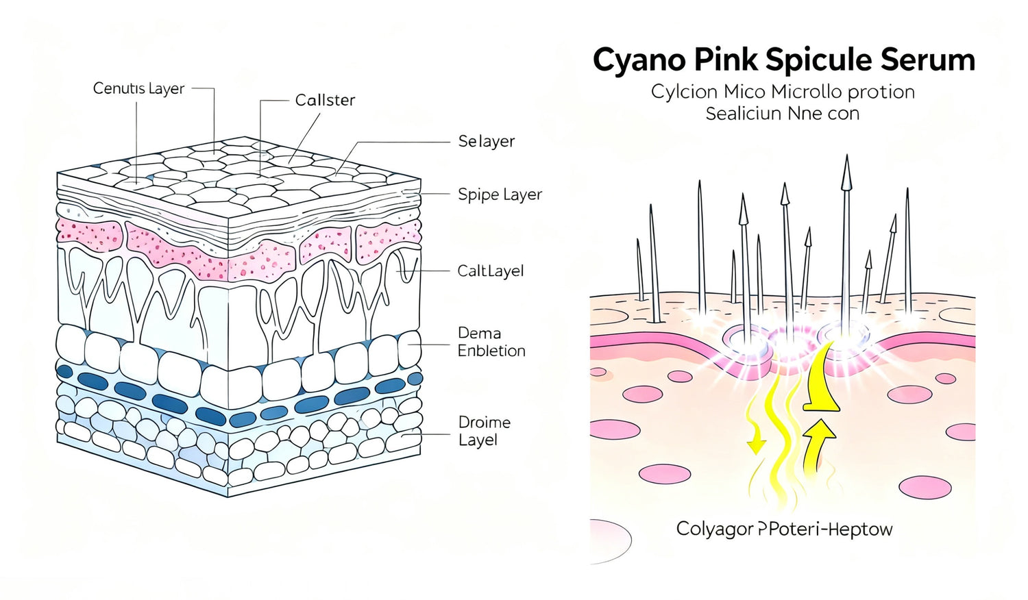 1. Cyano Serum: Tiny calcium spikes drill channels, deliver calcium to reinforce studs—locks collagen in (no midday fade).