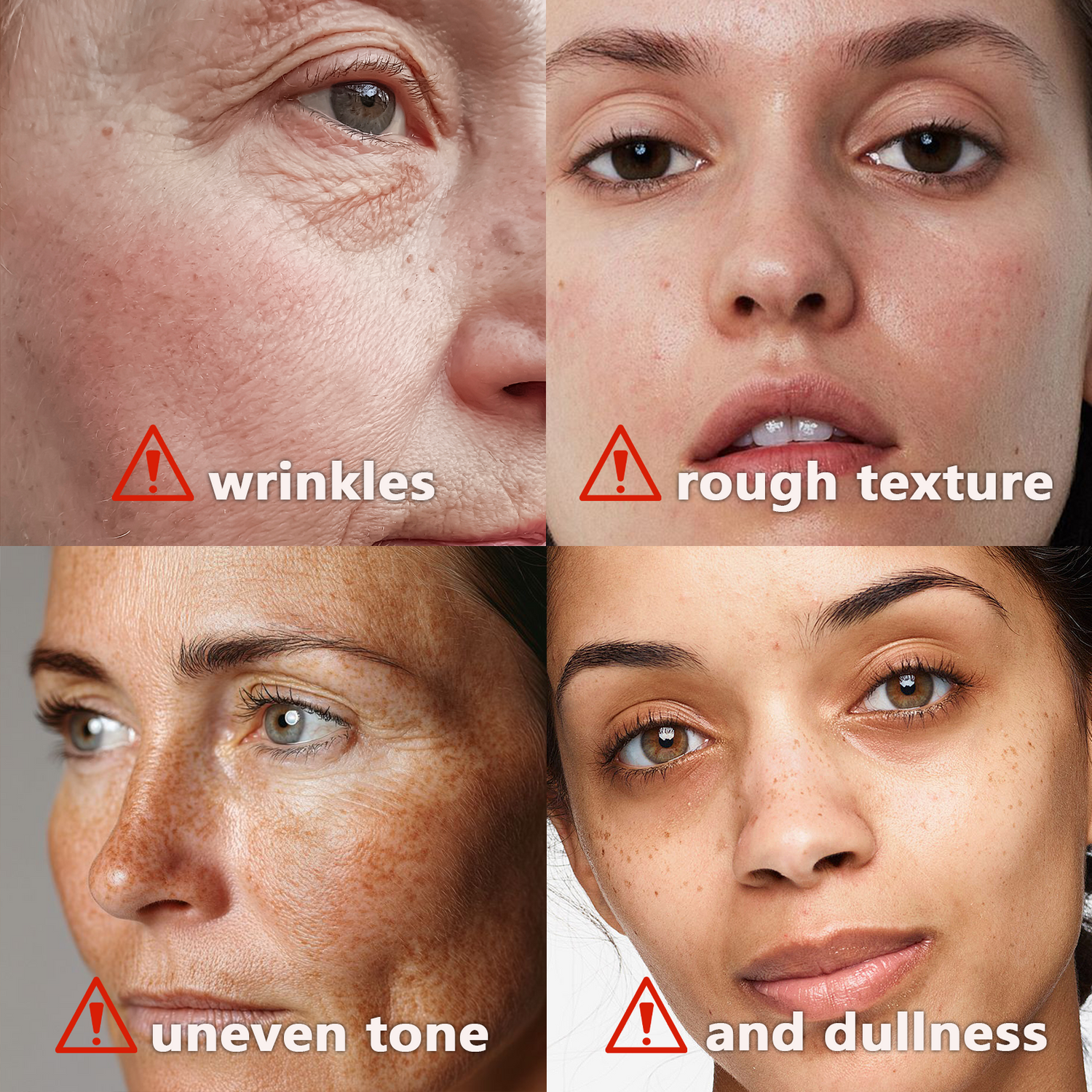 Environmental damage, UV exposure, and oxidative stress only make things worse — leading to wrinkles, uneven tone, rough texture, and dullness.
