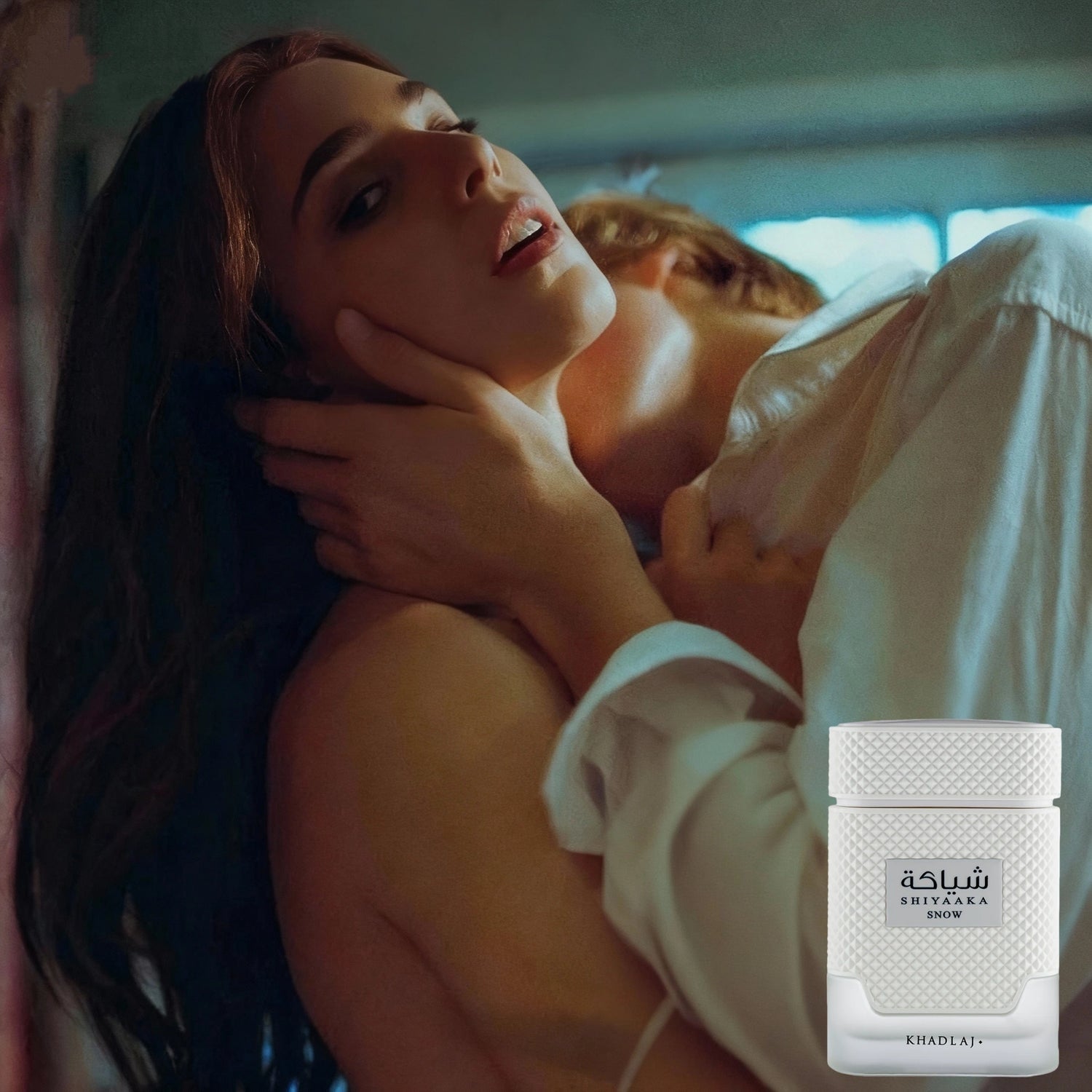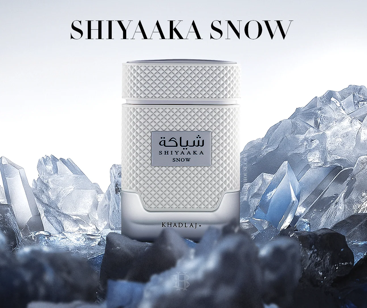 The matte white bottle ofNieve Shiyaaka reflects the purity and contemporary elegance of Khadlaj'screations. Its textured relief and snowy hue embody the fragrance's freshness, while its clean lines and silver cap convey a minimalist and prestigious aesthetic. It is a true collector's item for lovers of modern oriental fragrances.